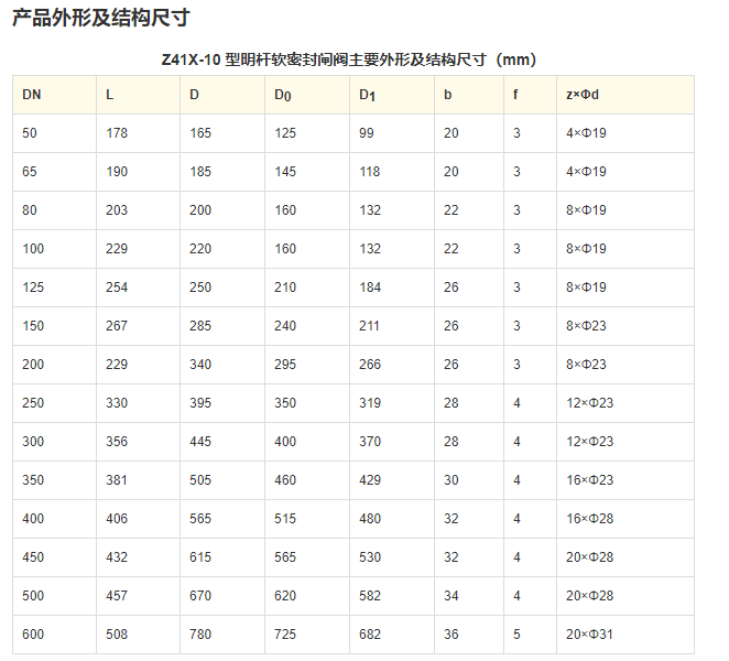 Z41X-10、Z41X-16Q 型明(ming)杆軟密封閘閥:手(shou)動、法蘭連接、明杆(gan)楔式剛性單閘闆(pǎn),閥座密封面材料(liào)為丁晴橡膠,公稱(cheng)壓力 PN10,閥體材料為(wéi)鑄鐵(Z41X-10)、球墨鑄鐵(Z41X-16Q)的(de)軟密封📱閘閥。